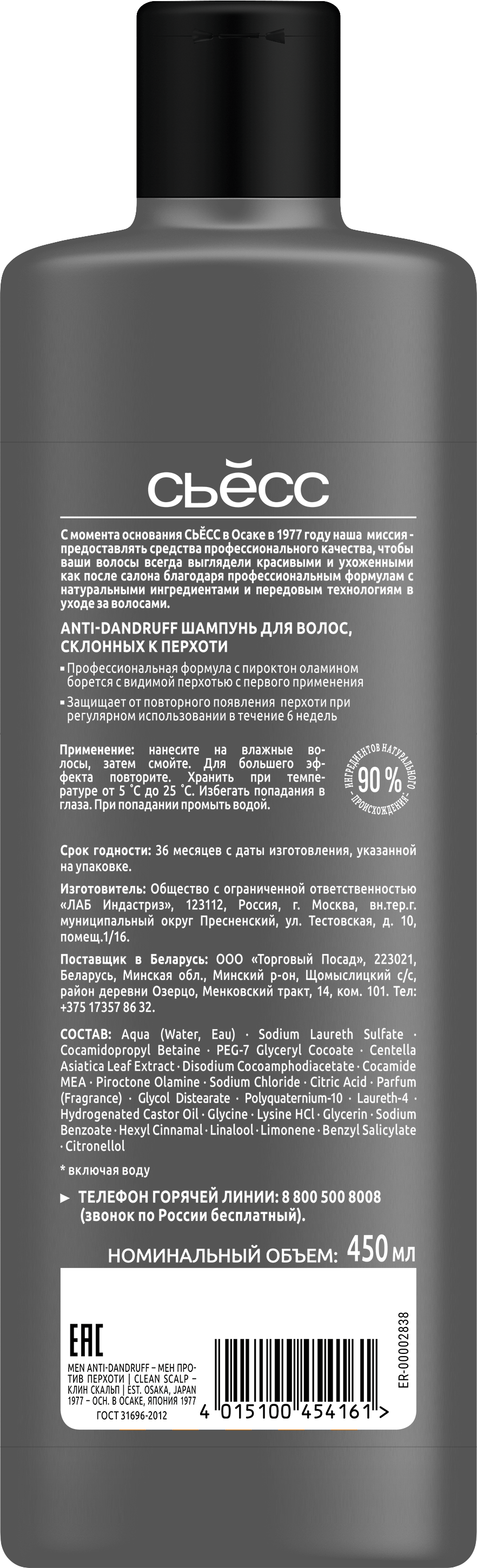 СЬĔСС Men Anti-Dandruff шампунь для волос, склонных к перхоти.