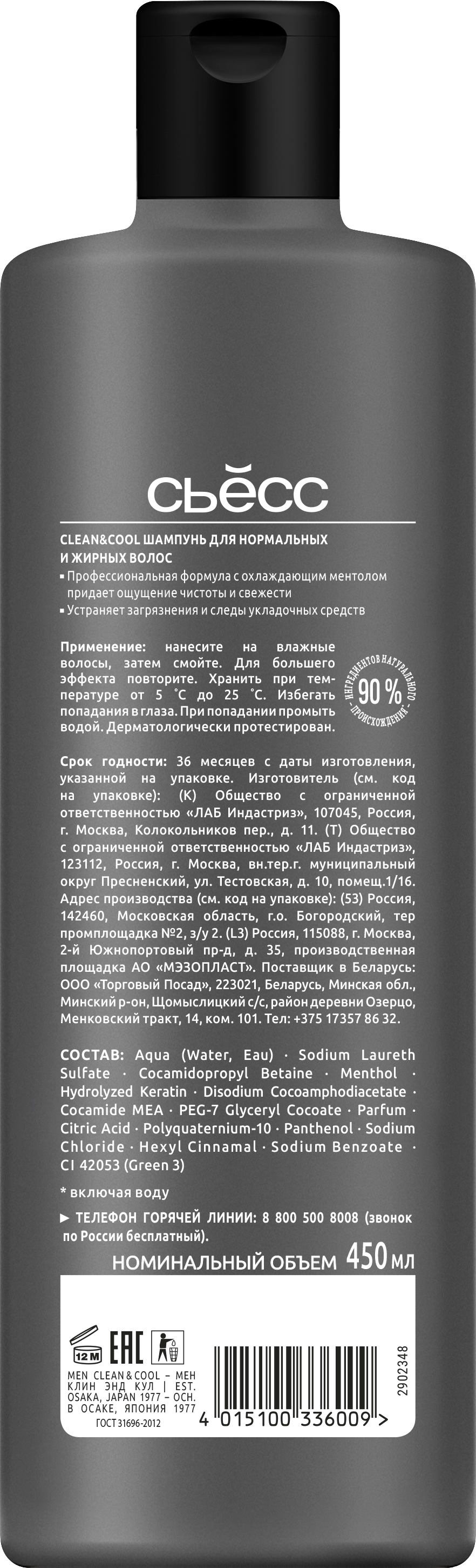 СЬĔСС Men Clean&Cool шампунь для нормальных и жирных волос.