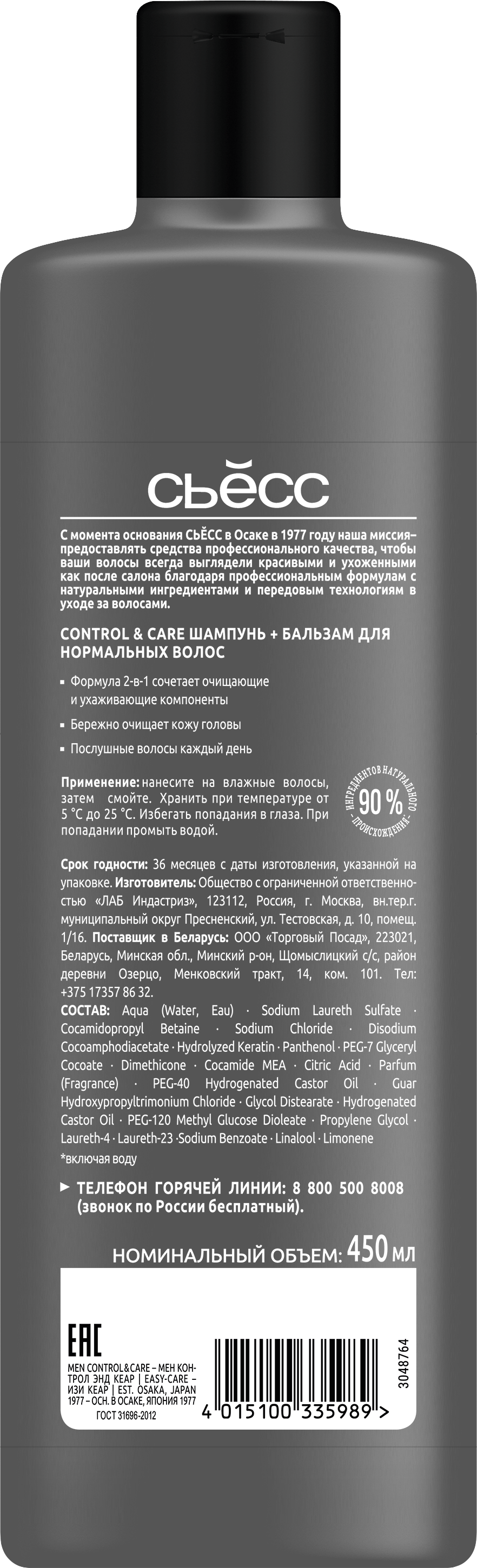 СЬĔСС Men Control&Care Шампунь+Бальзам для нормальных волос.