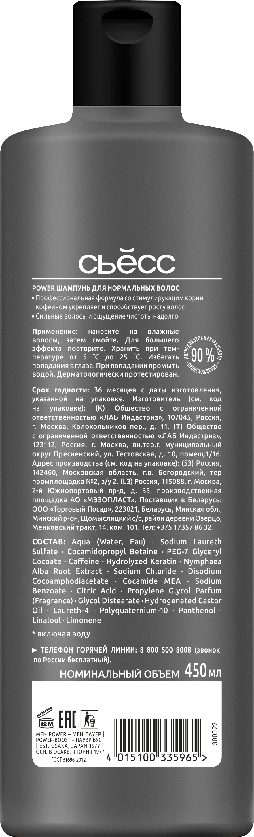 Aqua (Water, Eau) · Sodium Laureth Sulfate · Cocamidopropyl Betaine · PEG-7 Glyceryl Cocoate · Caffeine · Hydrolyzed Keratin · Nymphaea Alba Root Extract · Sodium Chloride · Disodium Cocoamphodiacetate · Cocamide MEA · Sodium Benzoate · Citric Acid · Propylene Glycol · Parfum (Fragrance) · Glycol Distearate · Hydrogenated Castor Oil · Laureth-4 · Polyquaternium-10 · Sorbitol · Panthenol · Linalool · Limonene