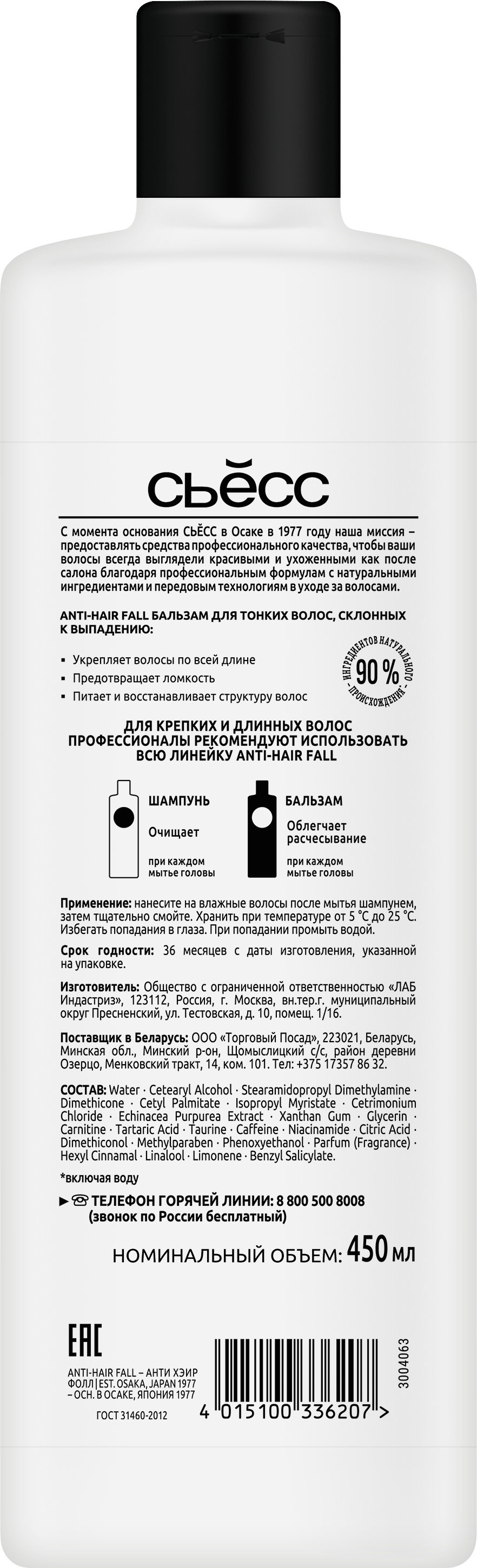 СЬĔСС Anti-Hair Fall бальзам для волос, склонных к выпадению.