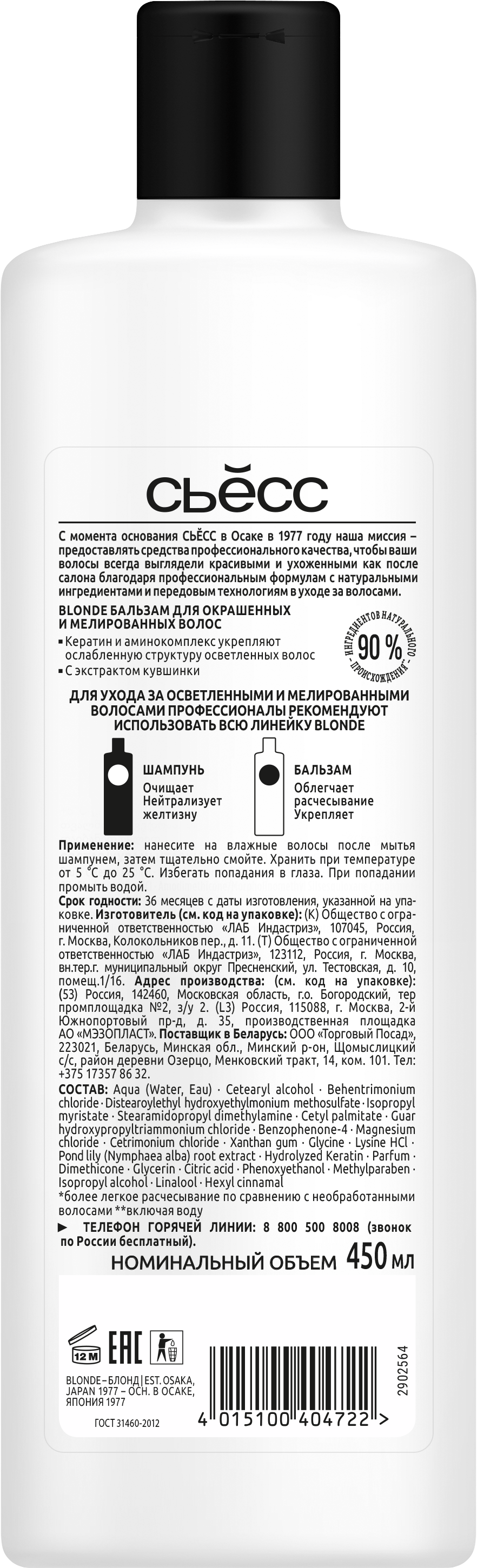 Способ применения: нанесите на влажные волосы после мытья шампунем, затем тщательно смойте. Хранить при температуре от +5 до +25 °С.